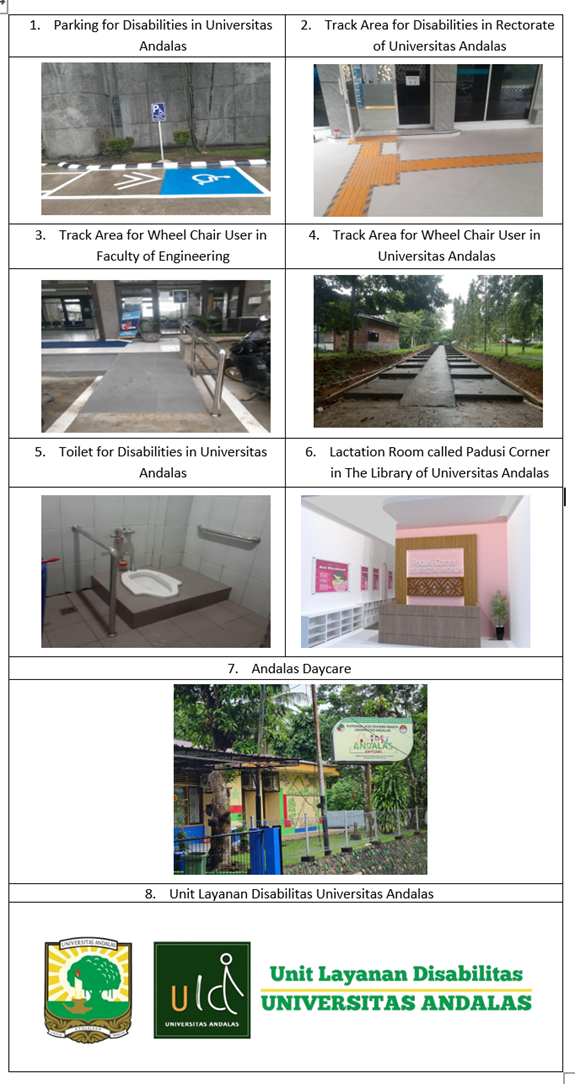 Furthermore, the campus houses a daycare facility for educators and staff, reinforcing Universitas Andalas’s efforts toward women’s empowerment. Gradually, the university is advancing toward the implementation of universal design principles, representing an important step in its transformation into a green, inclusive, and sustainable campus that welcomes and supports all members of its community, including vulnerable groups.