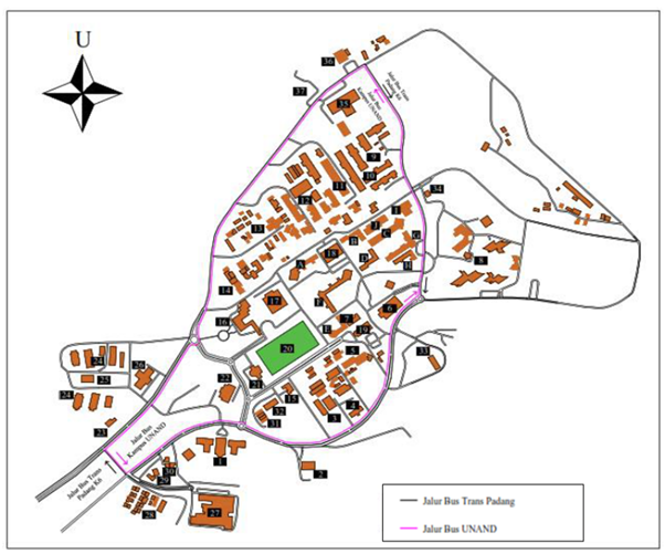 - Unand Employee Shuttle bus. These shuttle buses are provided a daily to serve the mobilization of lecturers and employees who live in the Unand Housing Complex and other places to the Unand Campus. There are three routes is provided, i.e. Air Tawar – Campus; Tabing – Campus; Perumahan Unand Ulu Gadut – Campus. This operates free of charge during weekdays from Monday to Friday, with a frequency of twice per day (drop off and pick up).