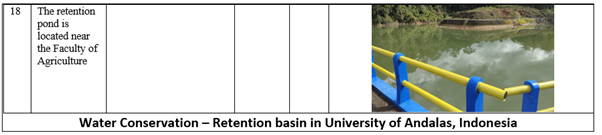 Universitas Andalas has 18 embungs strategically located throughout the campus area. An embung is a retention pond that collects rainwater runoff from the surrounding area and provides multiple benefits, including water supply, flood control, erosion prevention, and water storage. In addition, embungs contribute to groundwater recharge and help reduce heat around the campus. One new embung has been completed, further strengthening the university’s commitment to water conservation and environmental sustainability.